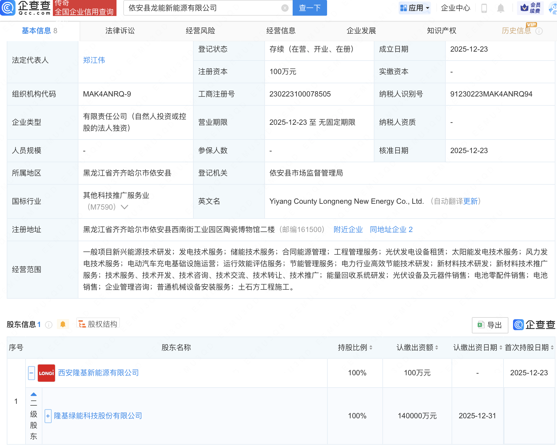 隆基绿能成立新公司,含电动汽车充电基础设施业务